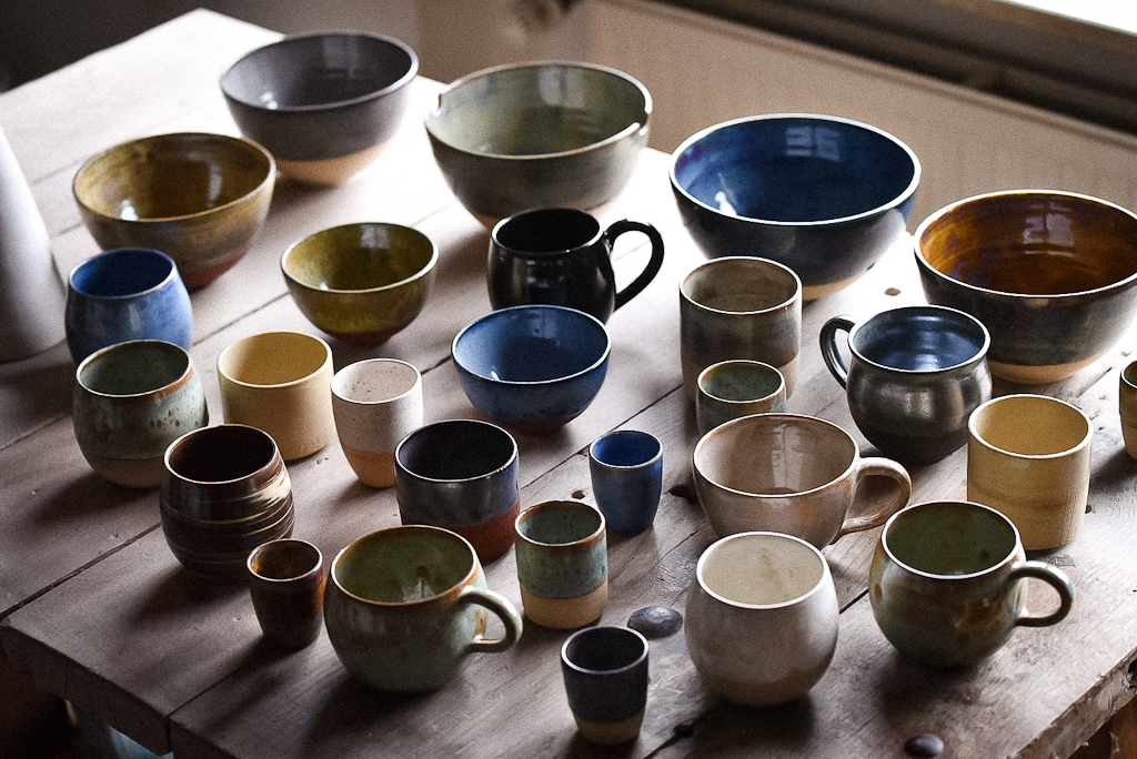 Alle Werkstücke werden auf der Töpferscheibe frei aus Ton gedreht.